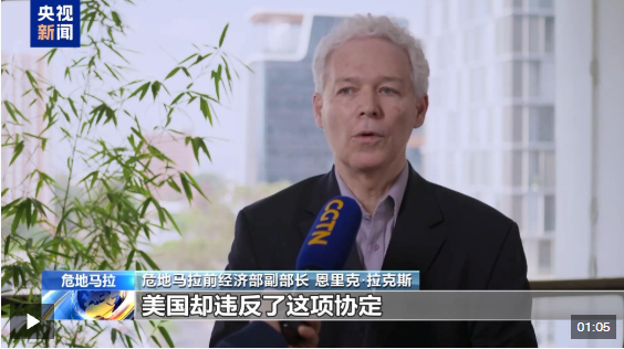 危地馬拉前經(jīng)濟(jì)部副部長 恩里克·拉克斯:美國的關(guān)稅政策背離所有基于規(guī)則的國際貿(mào)易準(zhǔn)則,我們中美洲國家與美國簽署了自由貿(mào)易協(xié)定,美國卻違反了這項協(xié)定。