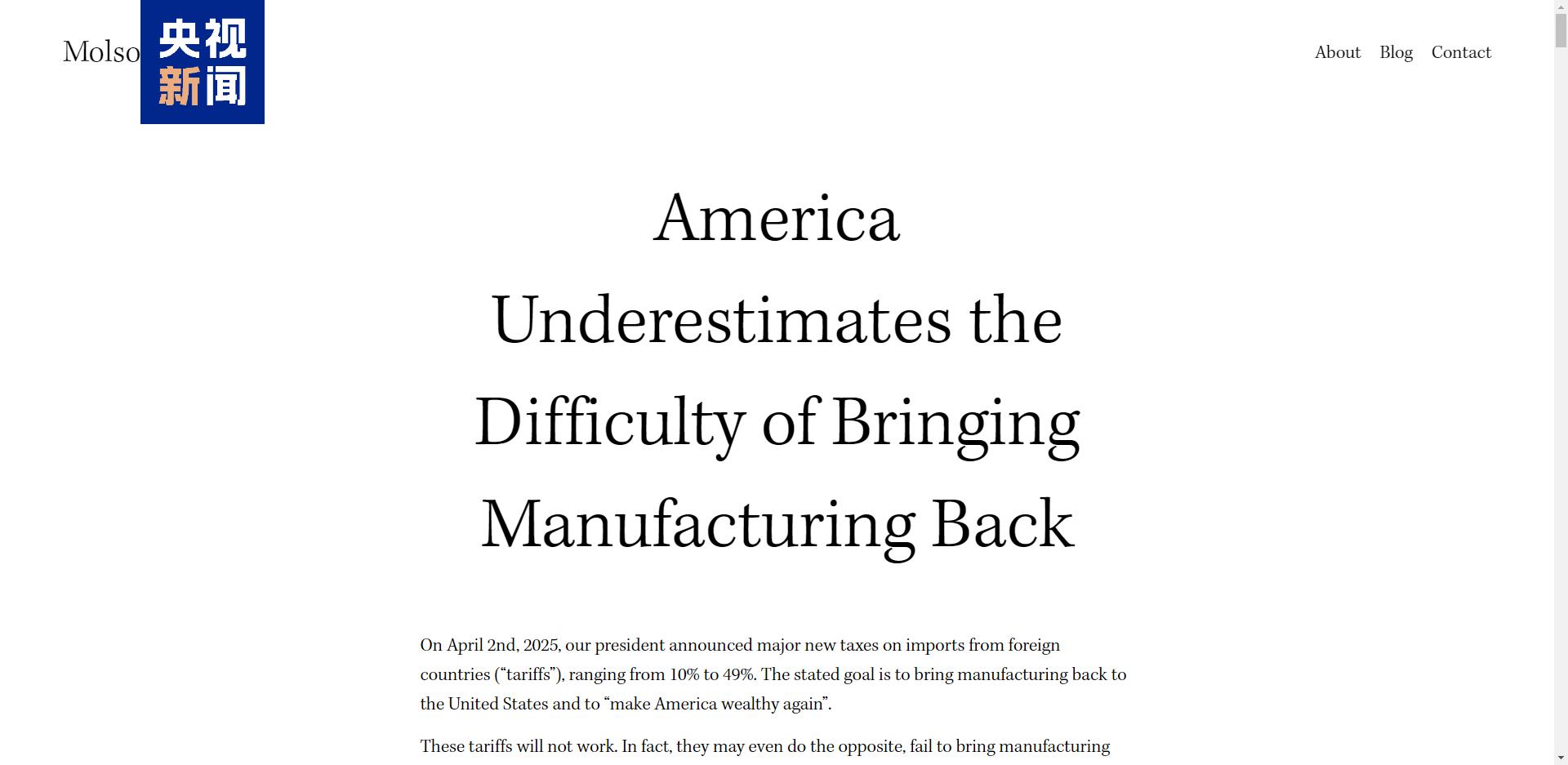莫爾森在文中稱,大多數(shù)美國人追求的是低犯罪率、優(yōu)質教育和低廉醫(yī)療。他說,那些對關稅政策最熱衷的人,往往從未親身參與過生產。
