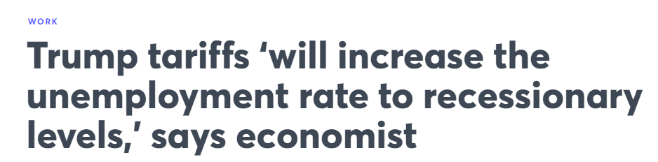 【世界說(shuō)】美經(jīng)濟(jì)學(xué)家:關(guān)稅政策將致美國(guó)失業(yè)率飆升至經(jīng)濟(jì)衰退水平 就業(yè)市場(chǎng)或迎寒冬