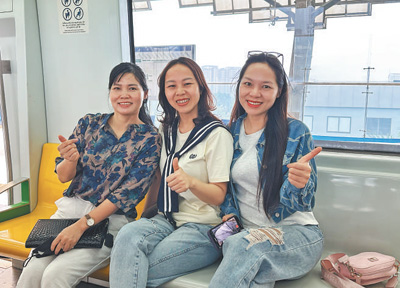 越南河內(nèi)市民點贊由中企承建的該國首條城市輕軌吉靈—河東線?! ”緢笥浾?孫廣勇攝