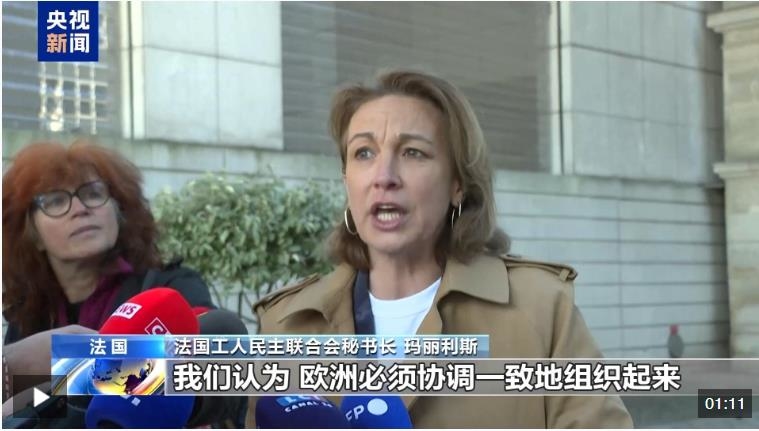 法國工人民主聯(lián)合會秘書長 瑪麗利斯:我們認(rèn)為,歐洲必須協(xié)調(diào)一致地組織起來,積極應(yīng)對美方關(guān)稅政策,應(yīng)該實施針對美方的關(guān)稅政策,研究美國公司進(jìn)入歐洲市場的準(zhǔn)入規(guī)則,并密切監(jiān)測關(guān)稅對歐洲企業(yè)的潛在影響。