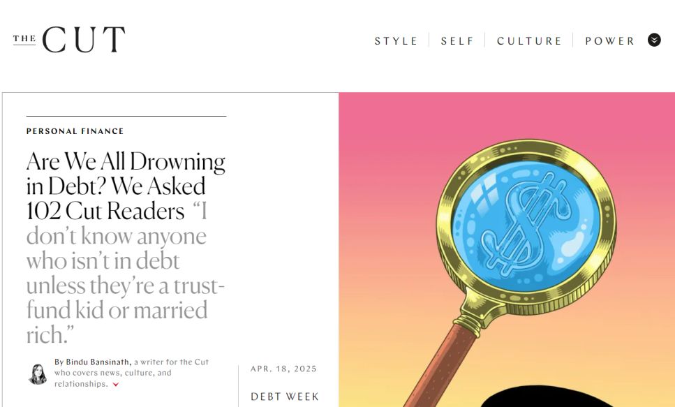 The Cut調查發(fā)現(xiàn),多數(shù)受訪者因信用卡過度消費而欠債,最常見的債務范圍在2.1萬美元至5萬美元之間。高利率的信用卡債務讓許多人陷入“以債養(yǎng)債”的惡性循環(huán),他們用“利息的倉鼠輪”來形容其背負債務。他們借新債還舊債,利息卻像滾雪球般越積越多,只能永無休止地償還最低還款額。