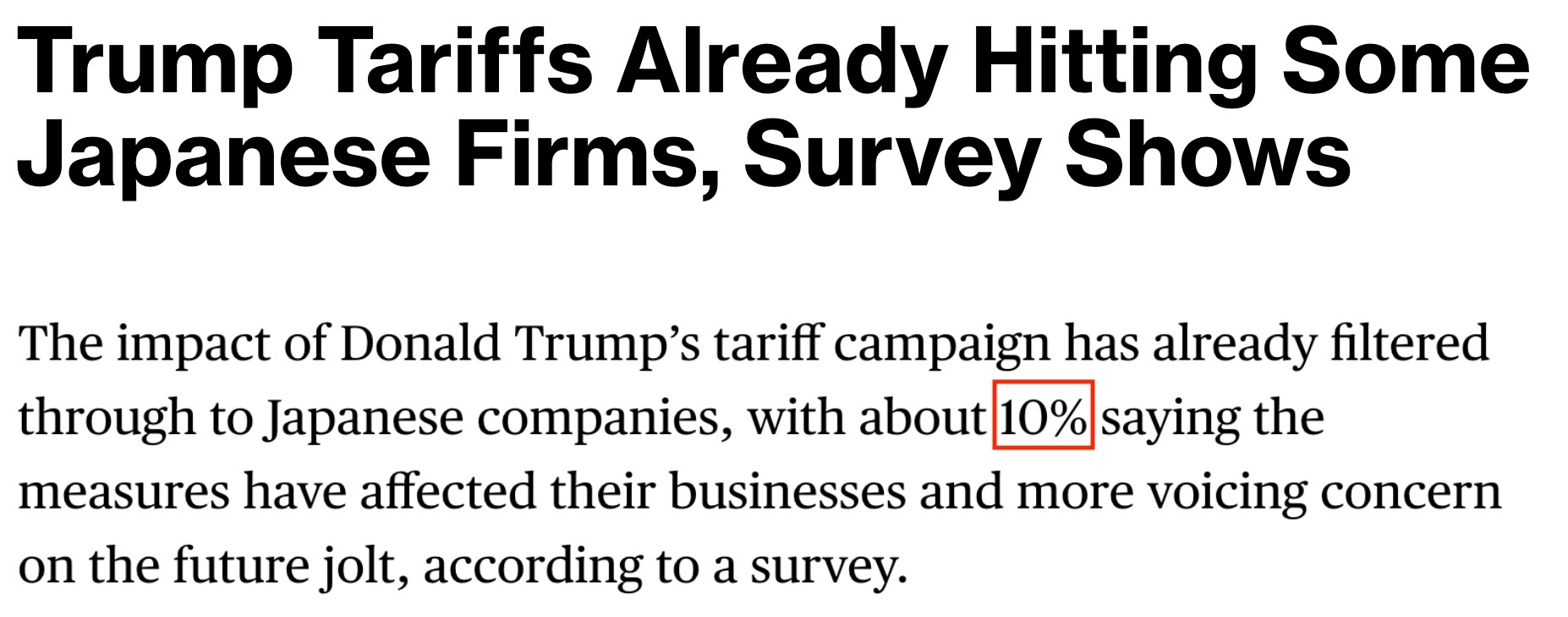 根據(jù)日本財(cái)務(wù)省22日公布的最新調(diào)查結(jié)果,約10%的日本企業(yè)表示,美國(guó)的關(guān)稅措施已經(jīng)直接影響到了它們的業(yè)務(wù);更多的企業(yè)則對(duì)未來(lái)的關(guān)稅沖擊感到恐慌。
