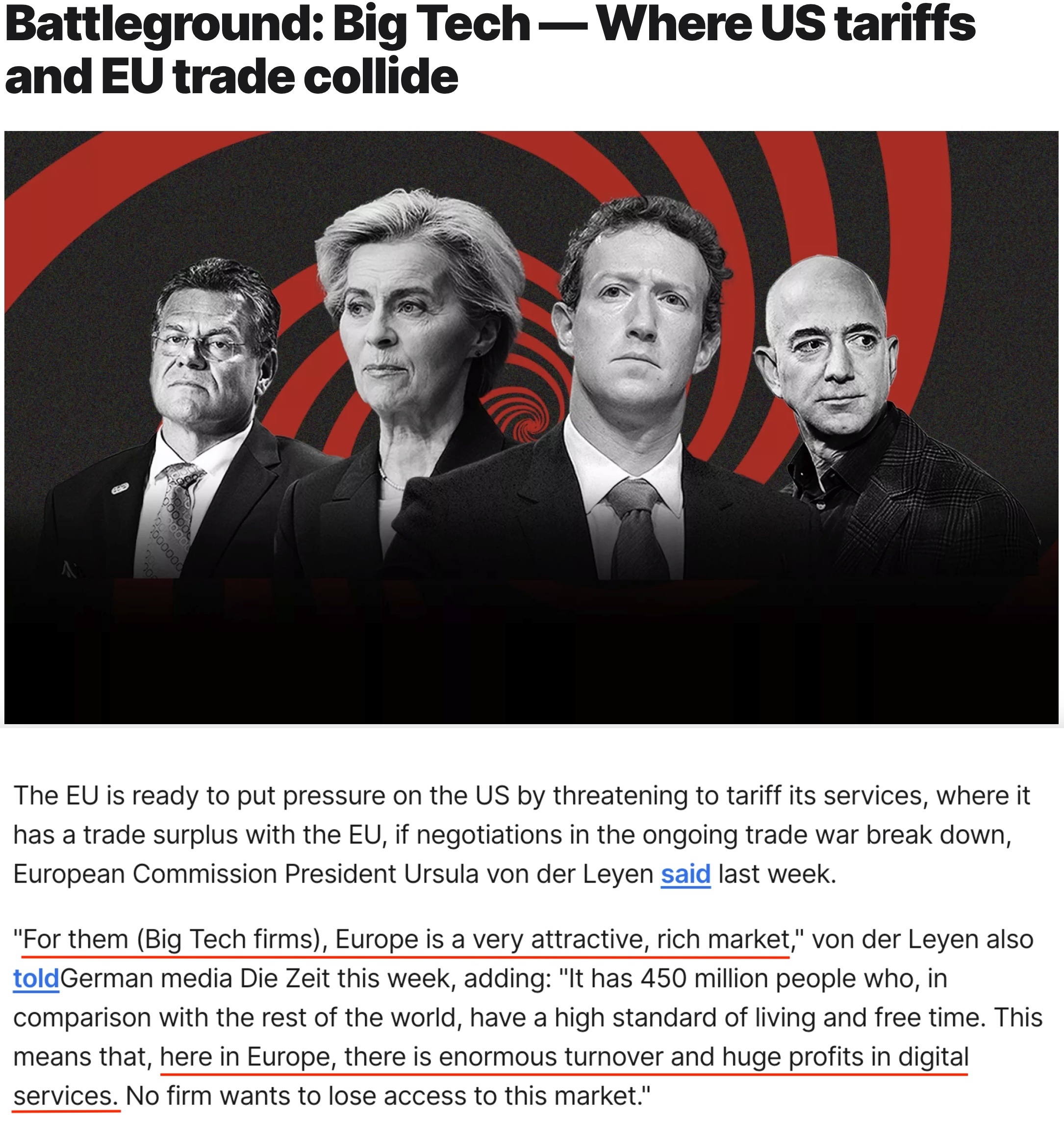 “對(duì)它們(美國(guó)大型科技公司)來(lái)說(shuō),歐洲是一個(gè)非常有吸引力的多金市場(chǎng)。”