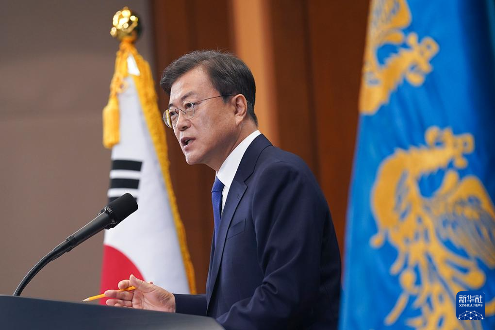 據(jù)韓聯(lián)社4月24日報(bào)道,韓國前總統(tǒng)文在寅因涉嫌受賄被檢方提起訴訟。這張拍攝于2020年5月10日的資料照片顯示,時(shí)任韓國總統(tǒng)文在寅在韓國首爾青瓦臺發(fā)表講話。新華社發(fā)(青瓦臺供圖)