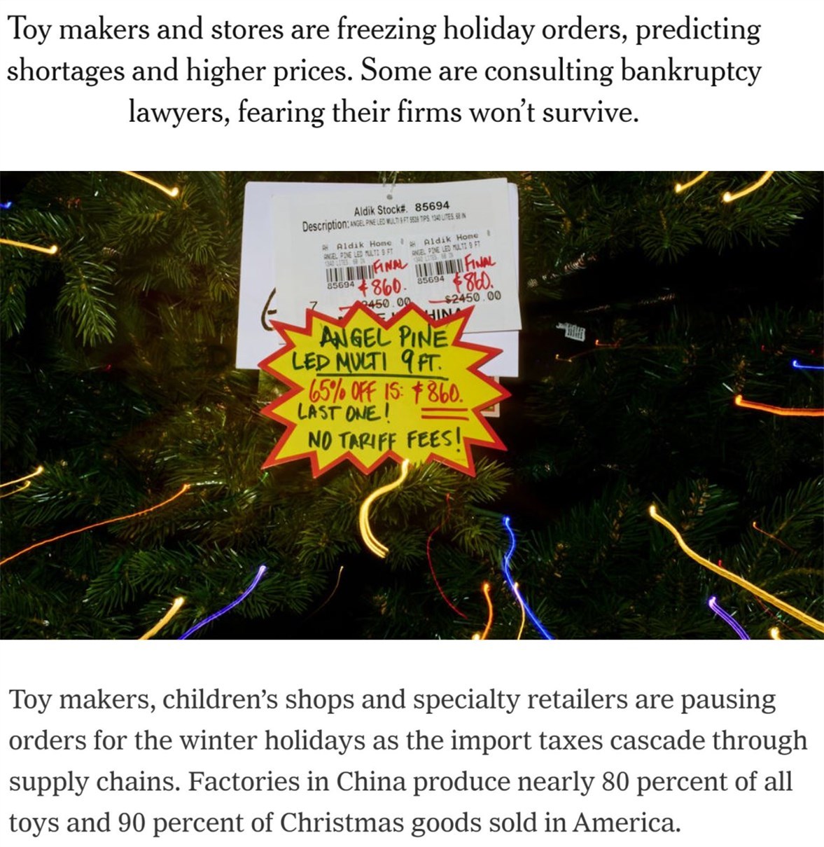 美國媒體和經(jīng)濟(jì)學(xué)家預(yù)計,這不僅將導(dǎo)致今年美國節(jié)日季出現(xiàn)產(chǎn)品短缺和價格上漲,還將嚴(yán)重壓縮整個行業(yè)的利潤,甚至美國的節(jié)日產(chǎn)業(yè)都將“不復(fù)存在”。