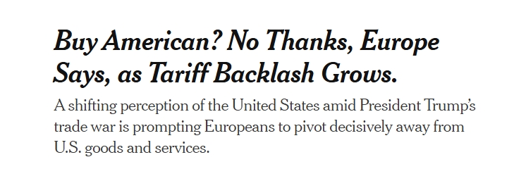 歐洲央行(European Central Bank,ECB)的最新評(píng)估顯示,在美國(guó)與歐洲貿(mào)易戰(zhàn)的緊張局勢(shì)下,許多歐洲消費(fèi)者開始回避美國(guó)產(chǎn)品和服務(wù),“不再購買美國(guó)貨”似乎是一次可能長(zhǎng)期持續(xù)的決定性轉(zhuǎn)變。