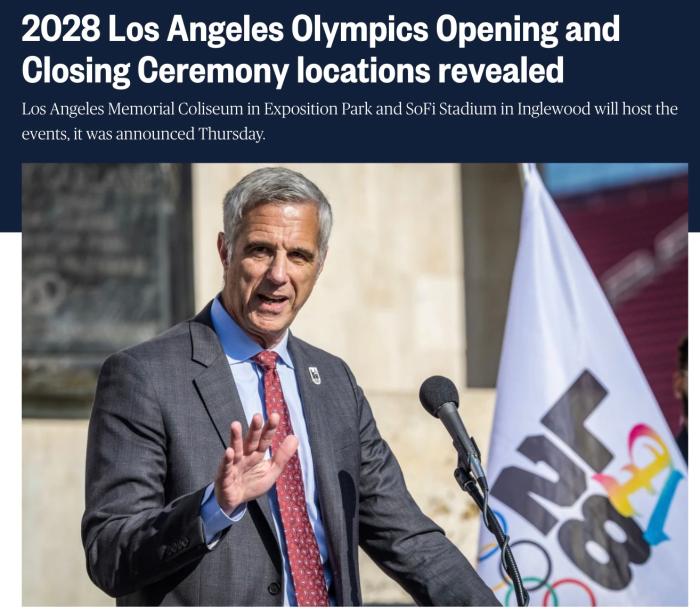 報道還提到,洛杉磯紀念體育場曾于1932年和1984年舉辦過奧運會。