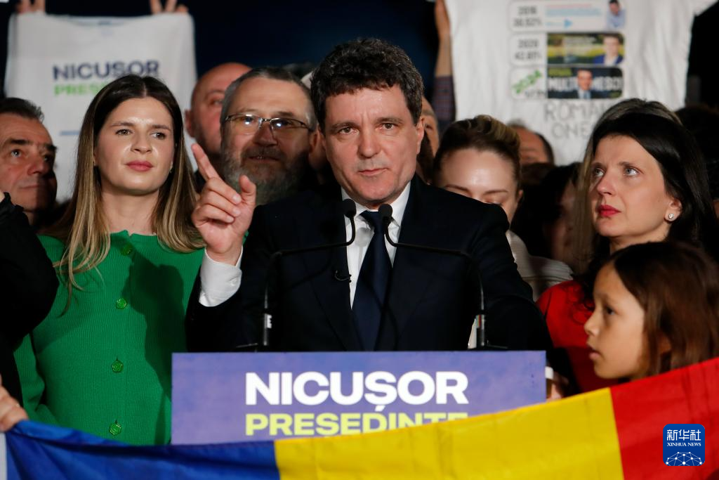 5月18日,在羅馬尼亞布加勒斯特,獨(dú)立候選人、布加勒斯特市長尼庫紹爾·達(dá)恩在總統(tǒng)選舉第一次投票后發(fā)表講話。新華社發(fā)(克里斯泰爾攝)