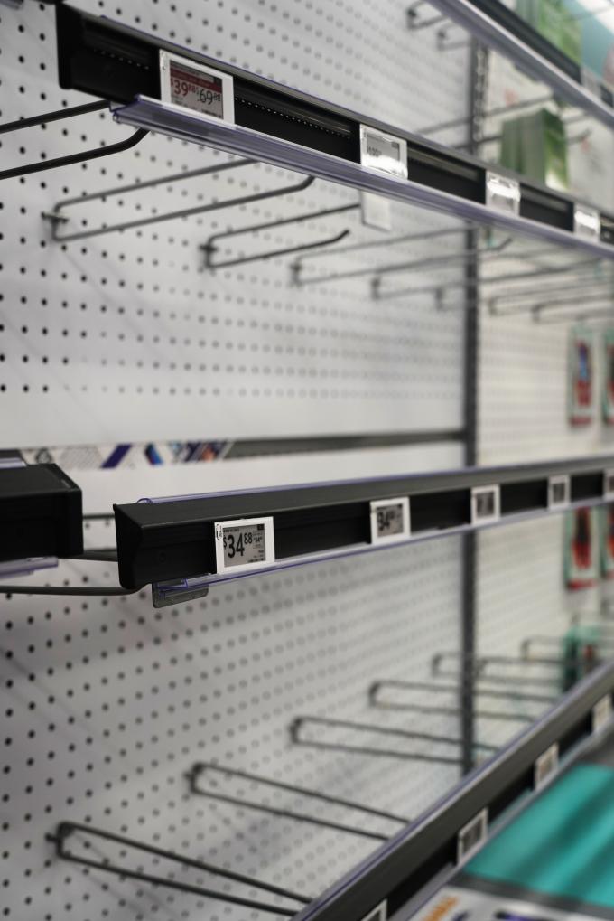 這是5月21日在美國加利福尼亞州舊金山灣區(qū)圣萊安德羅的一家沃爾瑪超市拍攝的空蕩的貨架。新華社記者 吳曉凌 攝