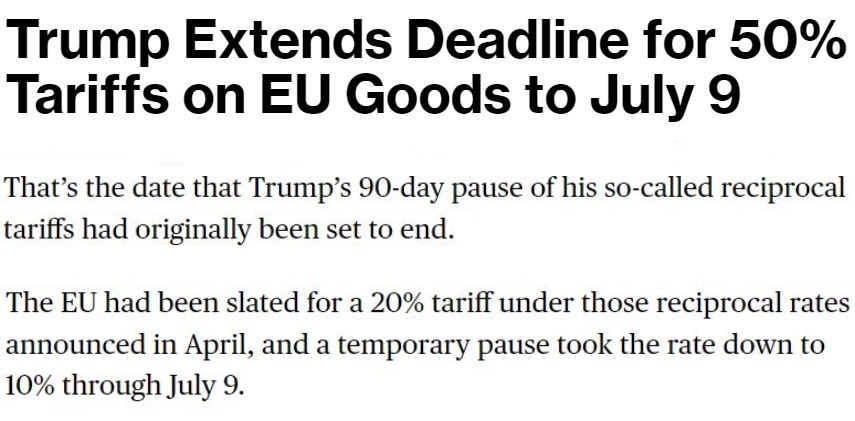 他25日告訴記者,自己當(dāng)天與歐盟委員會(huì)主席馮德萊恩“愉快”地通了電話,并應(yīng)對(duì)方要求,決定將原計(jì)劃從6月1日開(kāi)始對(duì)歐盟加征的50%的關(guān)稅推遲到7月9日,以便雙方有時(shí)間就此進(jìn)行談判。