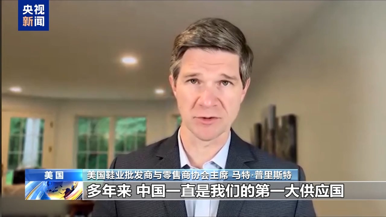 美國鞋業(yè)批發(fā)商與零售商協(xié)會主席 馬特·普里斯特:多年來,中國一直是我們的第一大供應(yīng)國。