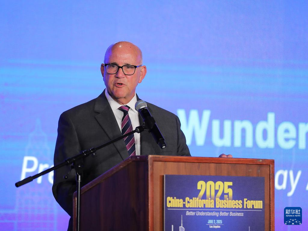 6月2日,在美國洛杉磯,舊金山灣區(qū)委員會主席吉姆·旺德曼在2025年中國—加州經(jīng)貿(mào)論壇上發(fā)表講話。新華社發(fā)(邱晨攝)