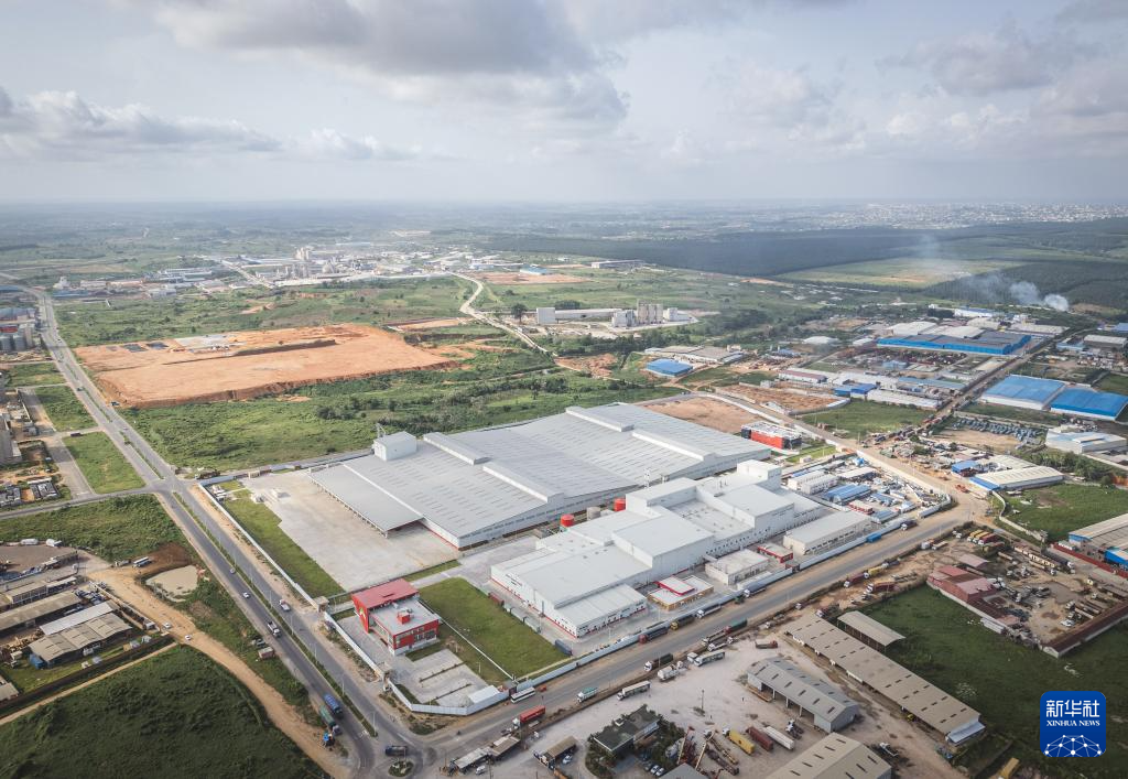 這是5月27日在科特迪瓦阿比讓西北部PK24工業(yè)園拍攝的阿比讓可可加工廠(無人機(jī)照片)。新華社記者 王冠森 攝