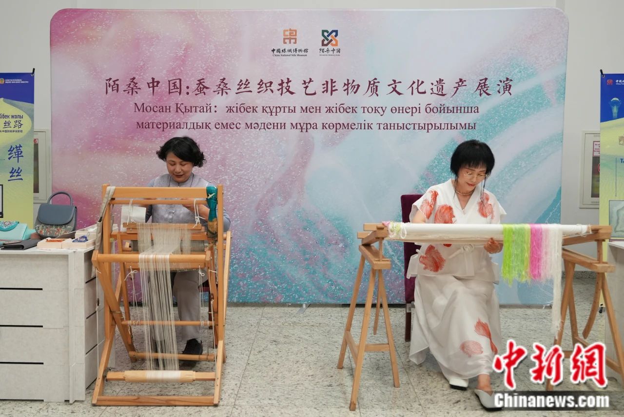 當(dāng)?shù)貢r(shí)間2025年6月16日,哈薩克斯坦“中國(guó)旅游年”開幕式在位于阿斯塔納的哈薩克斯坦國(guó)家博物館舉行。圖為手工藝者在非遺體驗(yàn)活動(dòng)中演示緙絲、臺(tái)繡等傳統(tǒng)技藝。 中新社記者 單璐 攝
