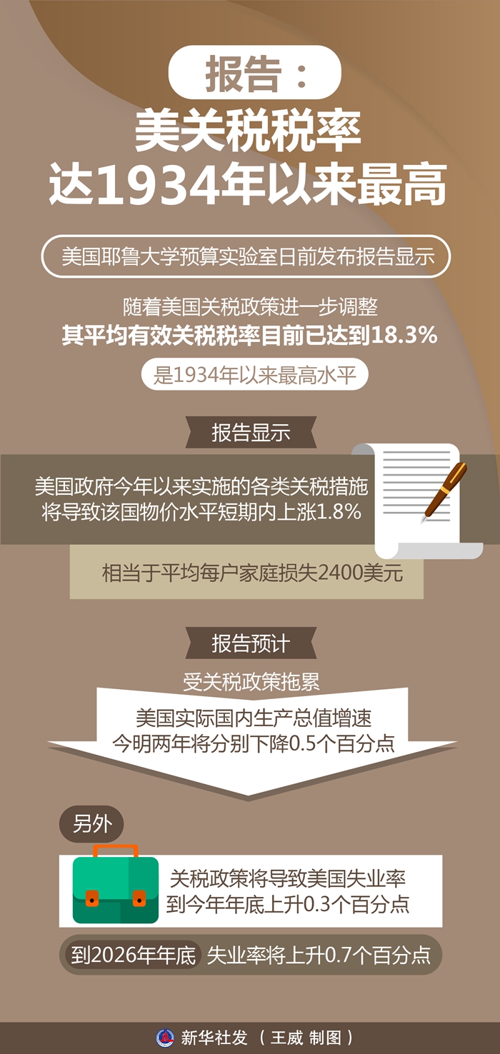 美國耶魯大學預(yù)算實驗室日前發(fā)布報告顯示,隨著美國關(guān)稅政策進一步調(diào)整,其平均有效關(guān)稅稅率目前已達到18.3%,是1934年以來最高水平。