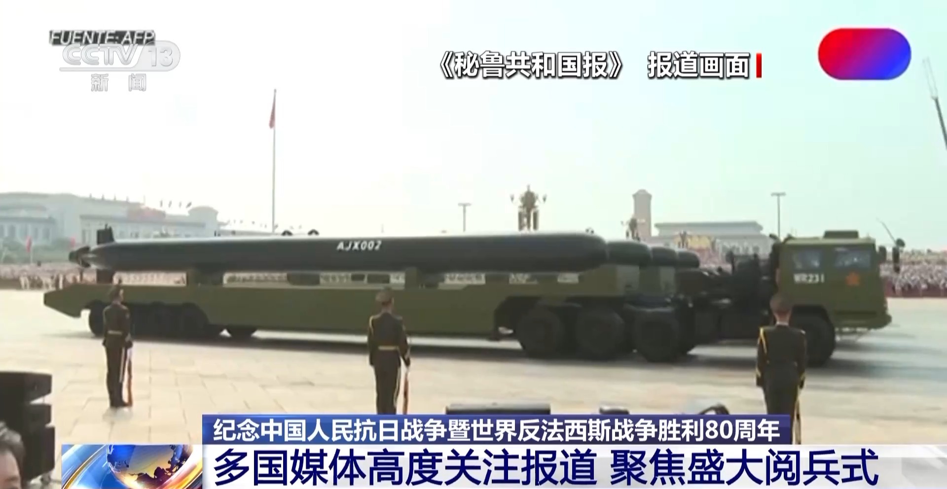 秘魯國家電視臺全程直播了3日的閱兵式?!睹佤敼埠蛧鴪蟆?、秘魯《商報》等多家媒體均關注報道了閱兵式上展示的先進軍事裝備。