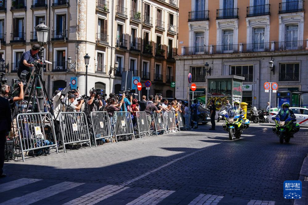 9月14日,在西班牙馬德里,媒體記者在中美經(jīng)貿(mào)會談地點(diǎn)外等待。新華社記者 彭子洋 攝
