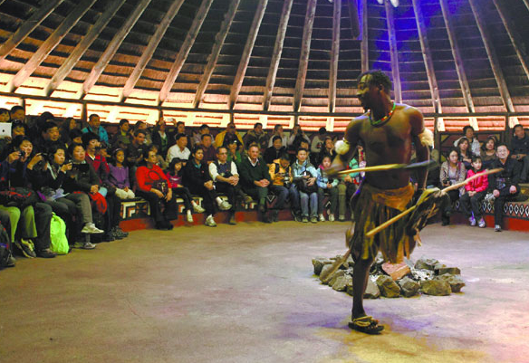 資料圖:中國游客在南非約翰內斯堡郊外觀賞民族舞蹈表演