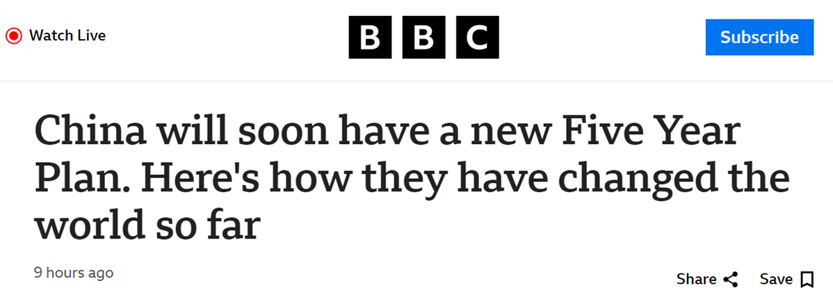英國廣播公司(BBC)網(wǎng)站報道稱,中共二十屆四中全會將奠定中國未來五年發(fā)展規(guī)劃的基礎(chǔ),這是世界第二大經(jīng)濟體在2026年至2030年間將遵循的藍圖。歷史證明,中國科學(xué)制定和接續(xù)實施的五年規(guī)劃已經(jīng)深刻重塑全球發(fā)展格局。