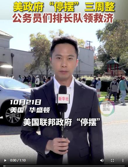 21日,美國聯(lián)邦政府“停擺”已整整三周。當(dāng)天午間,新華社記者在首都華盛頓東郊一處救濟(jì)點(diǎn)看到,被拖欠工資的聯(lián)邦雇員排起了數(shù)十米長隊(duì),領(lǐng)取免費(fèi)食品以解“燃眉之急”。