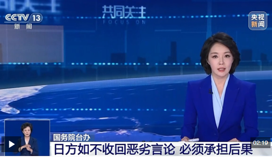 問:日本首相高市早苗日前發(fā)表若中國大陸對臺灣動武可能構(gòu)成日本“存亡危機事態(tài)”的言論,在中方嚴正交涉后仍妄稱其言論符合日本政府看法,無意撤回或取消。對此有何評論?