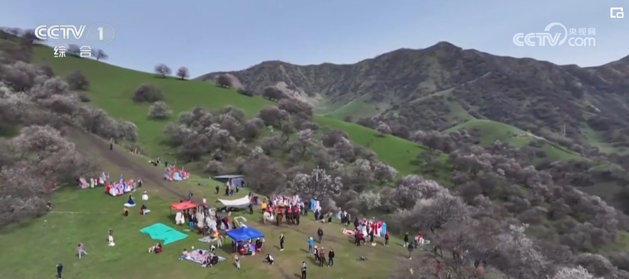 在天山北坡的新源縣吐爾根鄉(xiāng),遠(yuǎn)近聞名的野杏溝進(jìn)入盛花期。遠(yuǎn)處雪山綿延、近處春意盎然,吸引了全國各地的游客前來“打卡”。