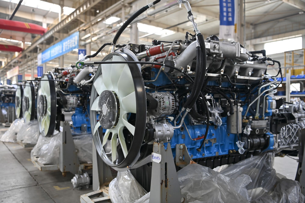 這是在位于山西省晉中市榆次區(qū)的山西新能源汽車工業(yè)有限公司(吉利晉中基地)拍攝的甲醇發(fā)動機(4月1日攝)。新華社記者 楊晨光 攝