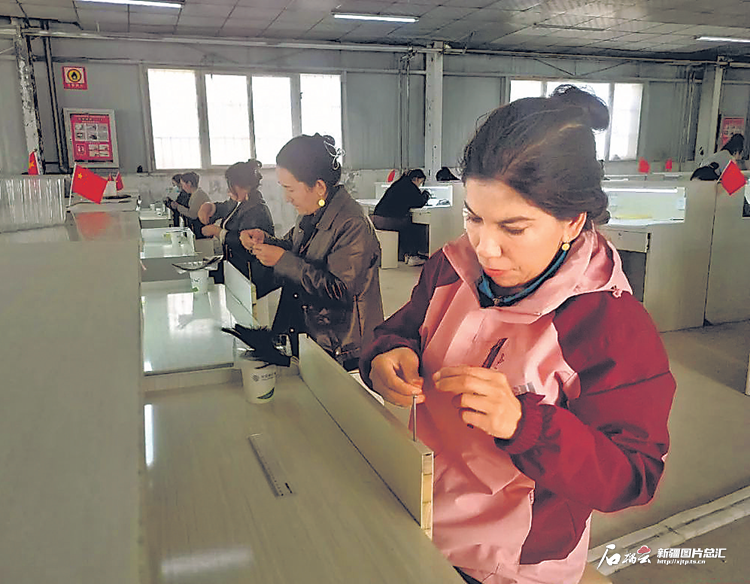 該公司負(fù)責(zé)人迪麗達(dá)爾·克依木說:“這個(gè)月我們有個(gè)100萬(wàn)元的訂單,工人正加班加點(diǎn)生產(chǎn)?!?/p>