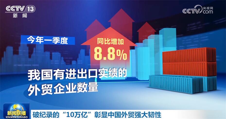 一季度,我國(guó)貨物貿(mào)易進(jìn)出口規(guī)模歷史同期首次突破10萬(wàn)億元,增速創(chuàng)6個(gè)季度以來(lái)新高。一季度進(jìn)出口令人欣喜的數(shù)據(jù)彰顯了中國(guó)外貿(mào)的強(qiáng)大韌性,提振了人們對(duì)實(shí)現(xiàn)今年經(jīng)濟(jì)增長(zhǎng)目標(biāo)的信心。