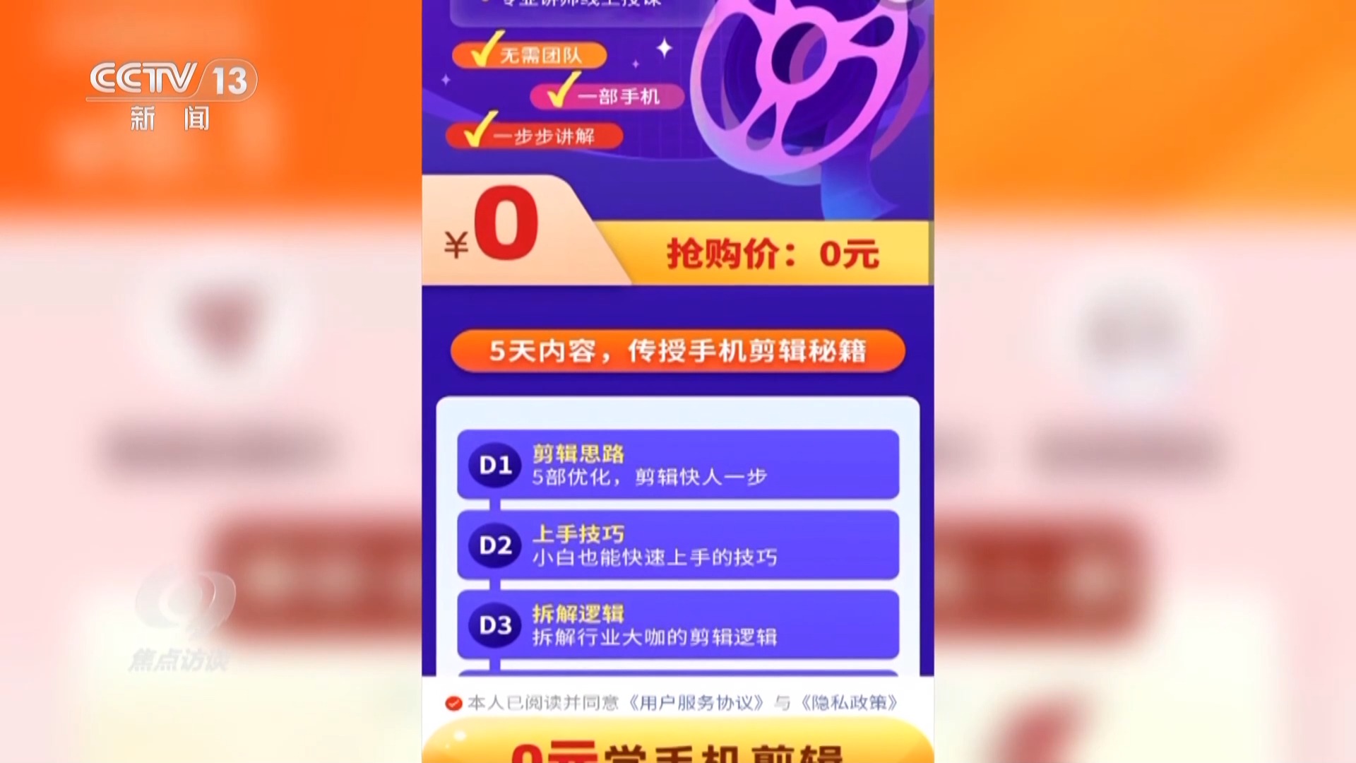 近年來,線上學(xué)習(xí)的普及程度越來越高,行業(yè)不斷發(fā)展壯大的同時,也衍生出一些亂象。部分所謂的培訓(xùn)機構(gòu)利用消費者急于學(xué)技、創(chuàng)業(yè)的心理制造焦慮,打著“0元學(xué)”的旗號,聲稱可以短期速成、財富增值。這種培訓(xùn)靠譜嗎?真的可以不用花錢就能學(xué)到本事,然后就能掙錢嗎?所謂的“0元學(xué)”里暗藏著哪些套路?