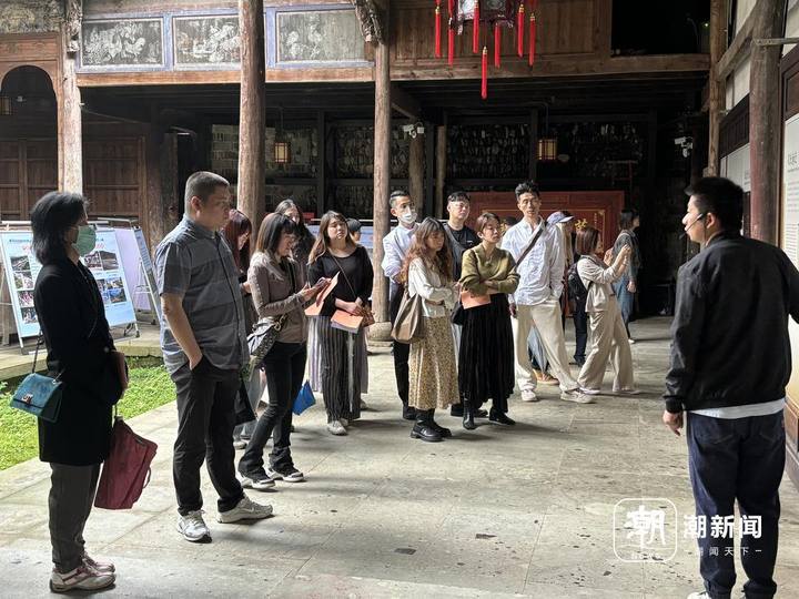 依山而建、傍水而居,位于磐安的櫸溪村又帶給臺青們另一幅鄉(xiāng)村畫卷,古樸宏偉的孔氏家廟,村落沿著溪流和山坡緩緩延伸,這里是江南地區(qū)一支孔子后裔聚集地?!斑@里每一條巷子里都能感覺到悠久的歷史氣息?!币宦飞吓_青們不停地拿起手機(jī)打卡留念。