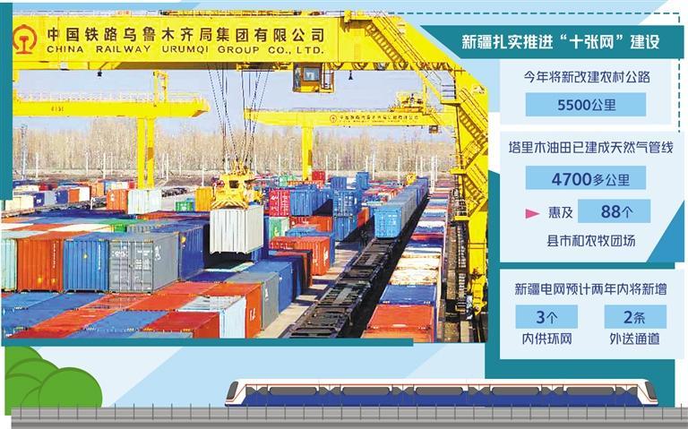 內(nèi)供外聯(lián)的電力網(wǎng)是新疆著眼于積極擴(kuò)大有效投資、構(gòu)建現(xiàn)代化基礎(chǔ)設(shè)施體系,今年確定密織的“十張網(wǎng)”之一,其他“九張網(wǎng)”為東聯(lián)西出的鐵路網(wǎng)、通行便利的公路網(wǎng)、干支聯(lián)通的航空網(wǎng)、調(diào)控有力的水利網(wǎng)、覆蓋廣泛的天然氣管網(wǎng)、高效暢通的商貿(mào)物流網(wǎng)、綠色低碳高效的算力網(wǎng)、集約便捷的地下管網(wǎng)、聯(lián)通歐亞的跨境網(wǎng)。