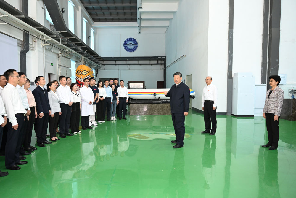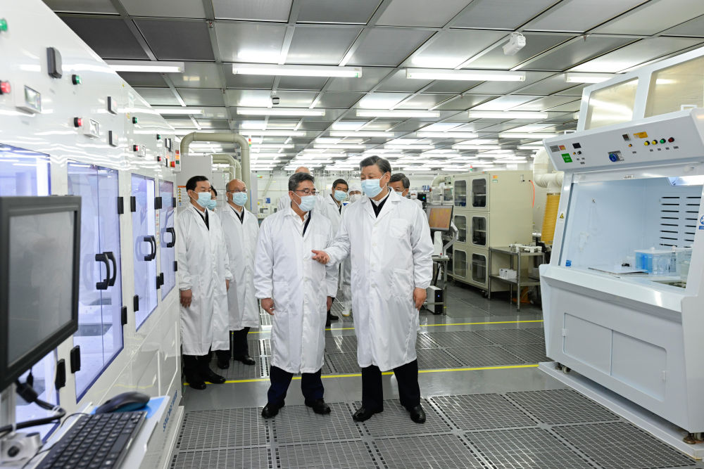 2023年5月11日至12日,習(xí)近平在河北考察,并主持召開(kāi)深入推進(jìn)京津冀協(xié)同發(fā)展座談會(huì)。這是12日上午,習(xí)近平在位于石家莊市的中國(guó)電科產(chǎn)業(yè)基礎(chǔ)研究院生產(chǎn)車(chē)間考察。