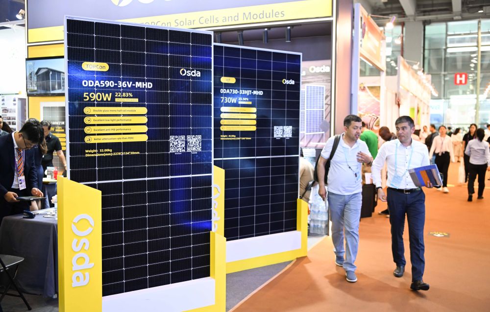 在創(chuàng)維公司的展廳,眾多客商圍觀一款可以由直面屏變?yōu)榍嫫恋淖冃坞娨?。除家電外,公司還專設(shè)新能源光伏的展區(qū)。創(chuàng)維公關(guān)負責人孫妮介紹說:“四年內(nèi),創(chuàng)維新能源業(yè)務從無到有,目前達到約234億元的規(guī)模?!泵鎸θ蚬夥皟δ茴I(lǐng)域的巨大市場機遇,創(chuàng)維集團積極推進新能源業(yè)務出海,現(xiàn)已布局到澳大利亞、墨西哥、南非等27個國家和地區(qū)。