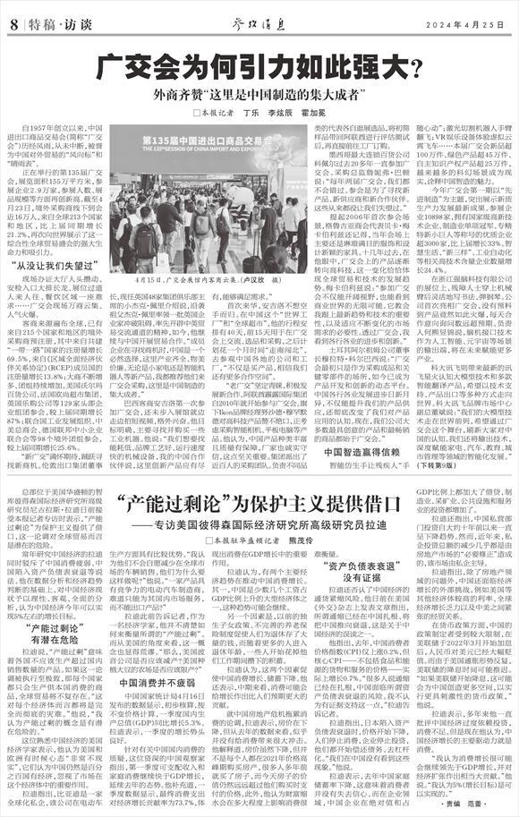 “新廣交”滿懷期待,踴躍尋找新商機。倫敦出口集團董事長,現(xiàn)任英國48家集團俱樂部主席的小杰克·佩里介紹說,沿襲祖父杰克·佩里率領(lǐng)一批英國企業(yè)家沖破阻礙、率先開辟中英貿(mào)易交流通道的精神,如今,他繼續(xù)與中國開展貿(mào)易合作?!俺蓡T企業(yè)在尋找商機時,中國是一個必然選擇,這里產(chǎn)業(yè)齊全、物美價廉。無論是小家電還是智能機器人等新產(chǎn)品,我都推薦他們來廣交會采購,這里是中國制造的集大成者。”
