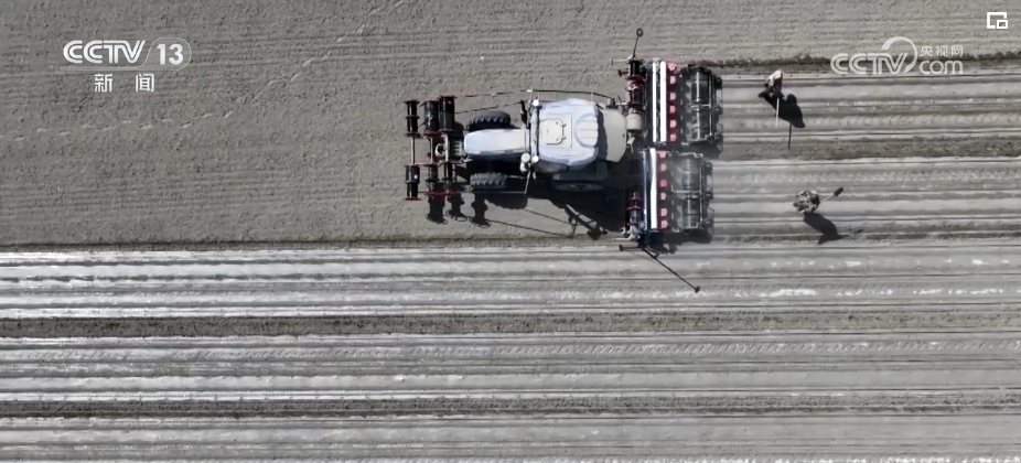 在新疆石河子市,工作人員2024年首次運用衛(wèi)星遙感技術(shù)進行棉花播種,在最佳溫度和濕度狀態(tài)下,粒粒棉種被播入田中。