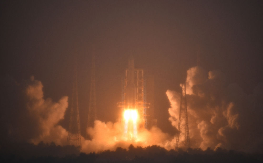 2024年5月3日,搭載嫦娥六號探測器的長征五號遙八運載火箭在中國文昌航天發(fā)射場發(fā)射。新華社記者 郭程 攝