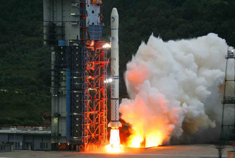 2007年10月24日18時05分,搭載著我國首顆探月衛(wèi)星嫦娥一號的長征三號甲運載火箭在西昌衛(wèi)星發(fā)射中心三號塔架點火發(fā)射。新華社記者 李剛 攝