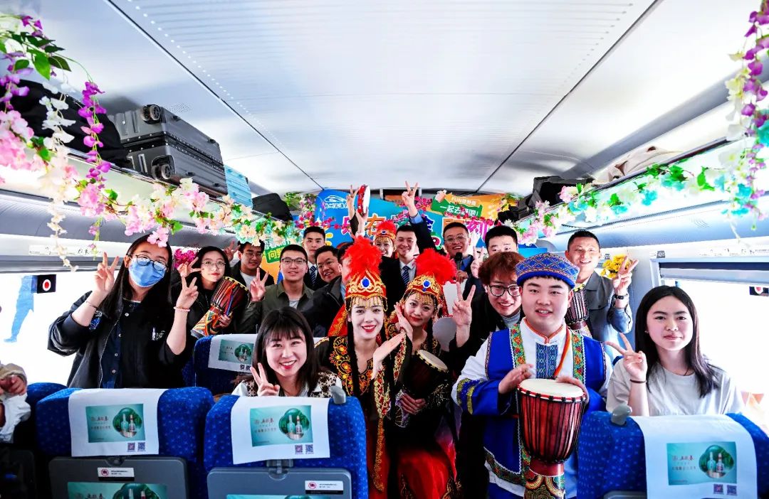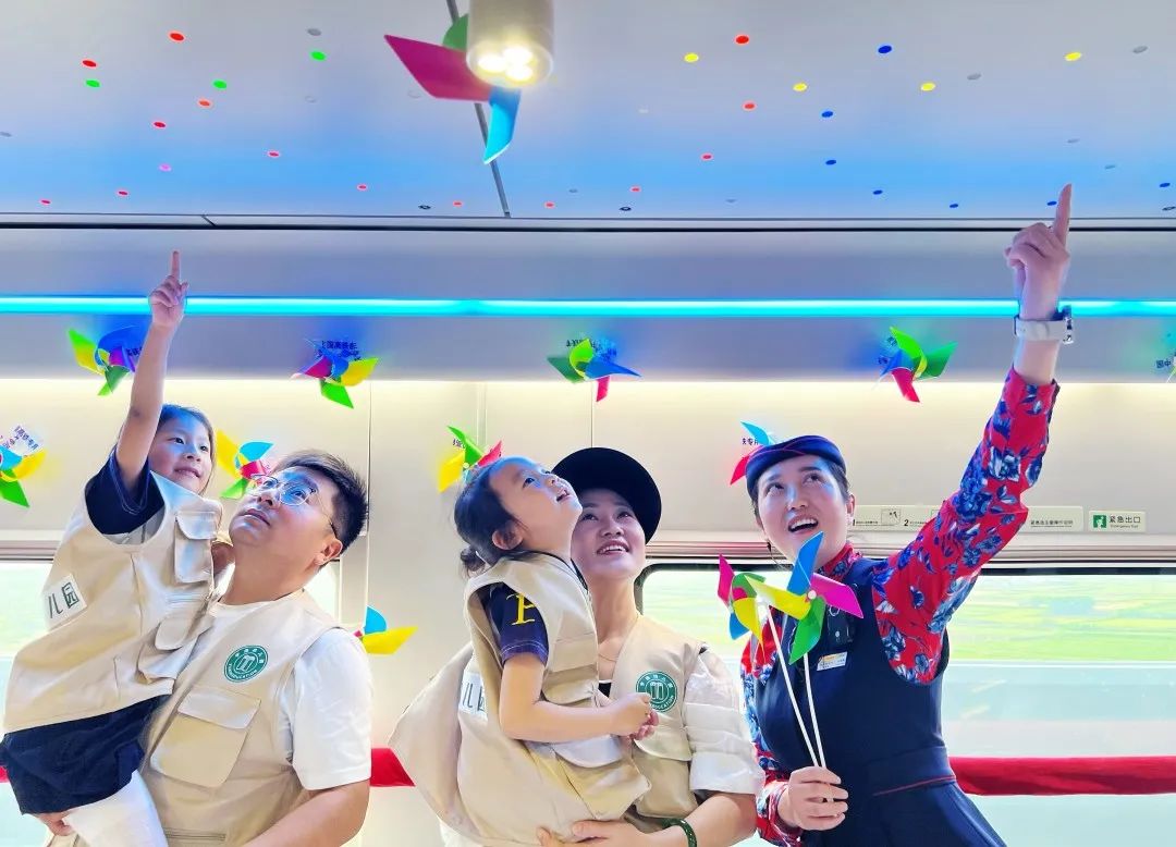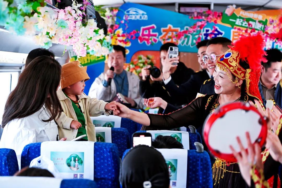 蘭州局集團(tuán)公司在G1876次列車上舉辦“樂(lè)在旅途 即刻出發(fā)”主題秀,用錦簇花團(tuán)裝飾列車,乘務(wù)員載歌載舞與旅客熱情互動(dòng),豐富旅客假期出行體驗(yàn)。