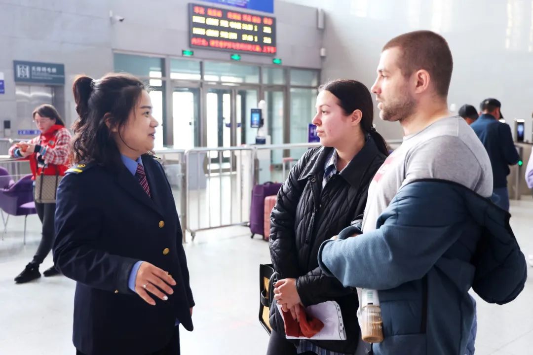 綏芬河站更是在國(guó)際聯(lián)運(yùn)的一線發(fā)揮著不可或缺的作用。哈爾濱局集團(tuán)公司針對(duì)假期綏芬河口岸外籍跨境游旅客增多的實(shí)際,組織翻譯員工成立志愿服務(wù)小隊(duì),為外國(guó)旅客提供雙語(yǔ)服務(wù)。