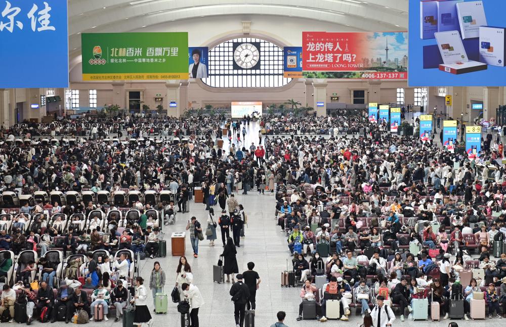 5月1日,出行旅客在哈爾濱火車站候車廳內候車。新華社發(fā)(原勇攝)