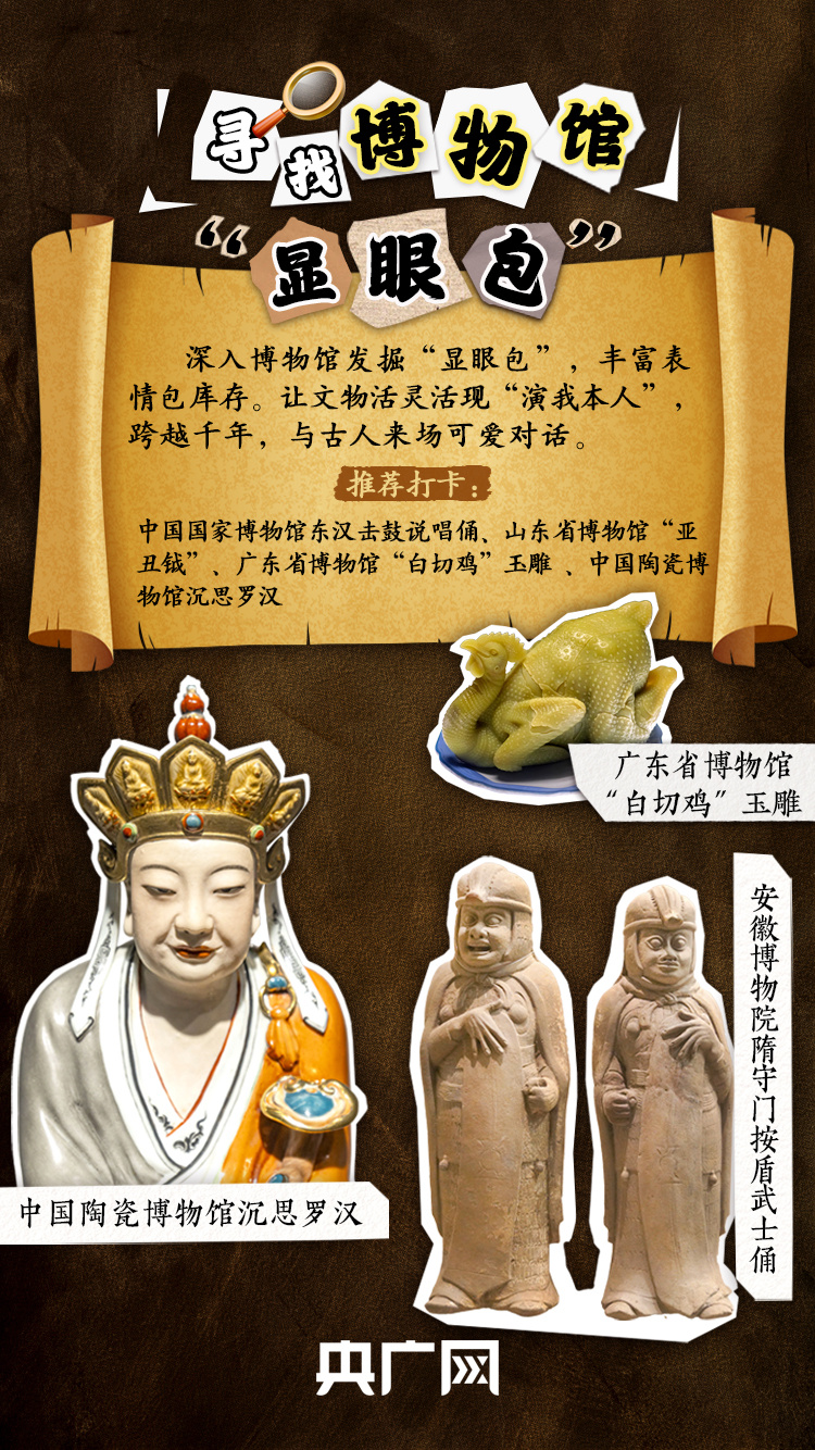 除國博外,各地博物館都有不少“出圈”的網(wǎng)紅“顯眼包”,安徽博物院“摸著良心說話”的守門按盾武士陶俑,廣東省博物館連顏色、毛孔都十分逼真的白切雞玉雕,山東博物館在古代象征王權(quán)、但今天看起來“萌萌的”亞丑鉞……都受到大眾喜愛??此聘阈Φ奈奈锉砬榘澈?,其實是青年人對博物館的關(guān)注,對無盡歷史的探究之心。
