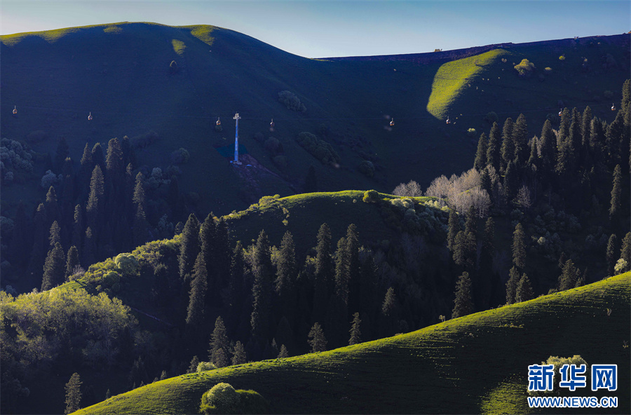 5月的新疆那拉提草原綠草如茵,繁花盛放,生機勃勃。清晨的光線照射在那拉提起伏的山體脊梁上,匯聚成神奇的光與影的世界,陽光勾畫出山體草甸輪廓,線條柔美,層次分明。山梁與山脊、草木披上金色長袍,為綿延起伏的草甸增戴上神秘面紗,一幅美麗的畫卷展現(xiàn)在眼前,令人陶醉。
