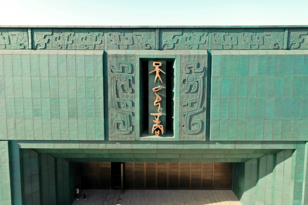 兩個(gè)多月前,安陽(yáng)殷墟博物館新館正式開館。遙遙望去,新館造型頗具巧思——鼎形的建筑矗立水畔,古銅色的大門,青銅飾面為幕墻,“大邑商”仿佛從3000年前款款走來(lái)。