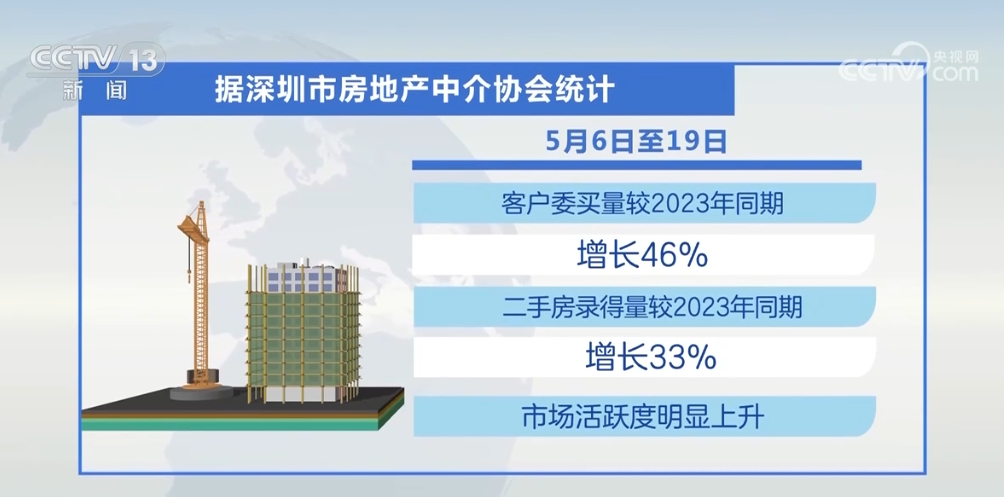 據(jù)深房中協(xié)統(tǒng)計(jì),5月6日至19日,深圳市客戶委買量較2023年同期增長46%,二手房錄得量較2023年同期增長33%,市場(chǎng)活躍度明顯上升。