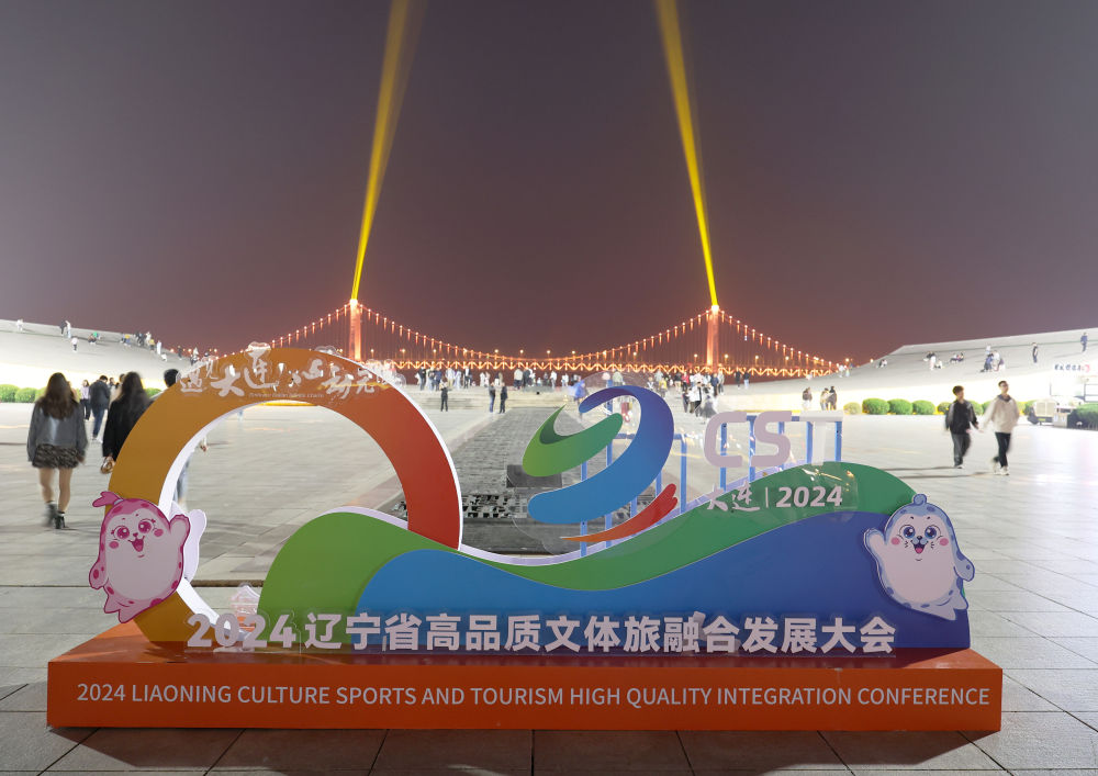 這是在遼寧省大連市星海廣場(chǎng)拍攝的“2024遼寧省高品質(zhì)文體旅融合發(fā)展大會(huì)”的展板(2024年5月23日攝)。 新華社記者 李鋼 攝