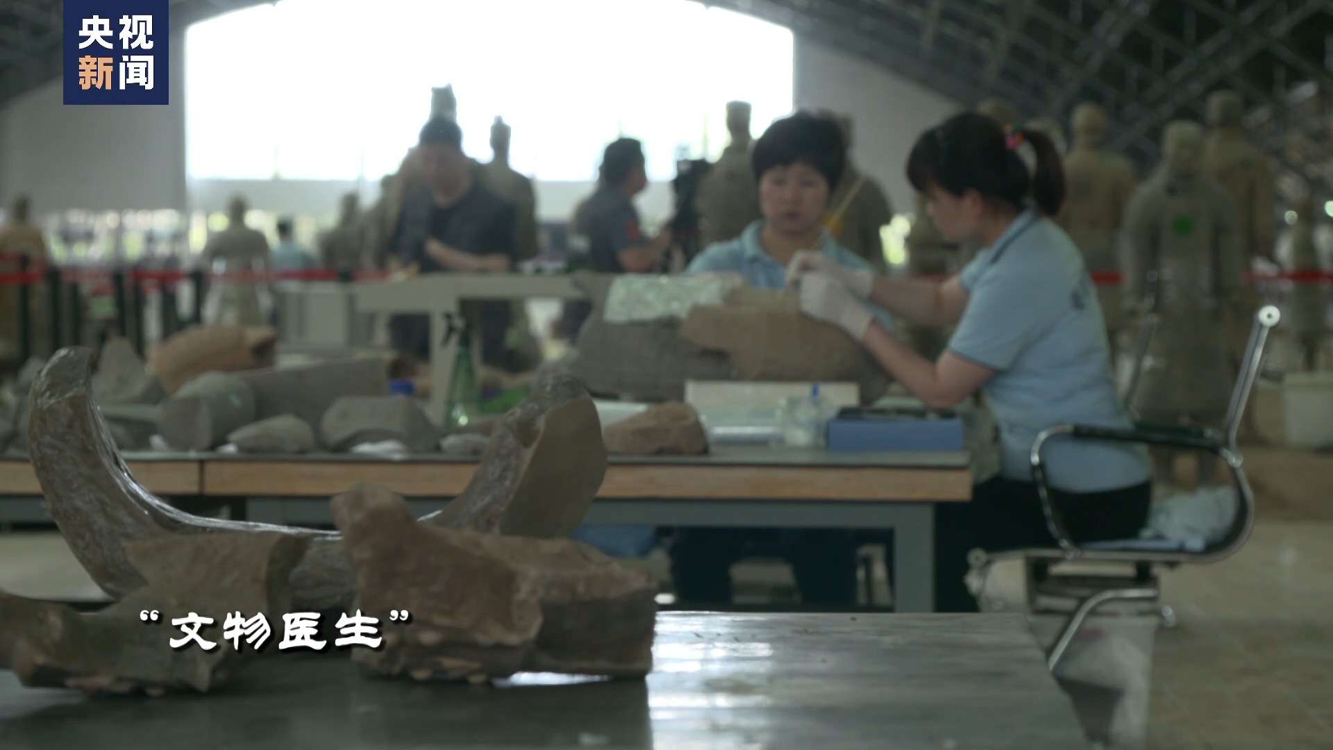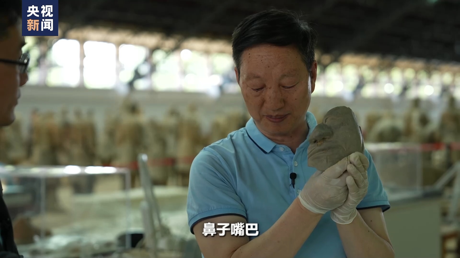 記者:我看到坑里那些陶俑的時候,發(fā)現(xiàn)其實(shí)他們身上的修復(fù)痕跡可能我隔得比較遠(yuǎn),已經(jīng)基本上看不到了。是有什么特殊的方法,把這些拼接的地方給弄得特別的自然?