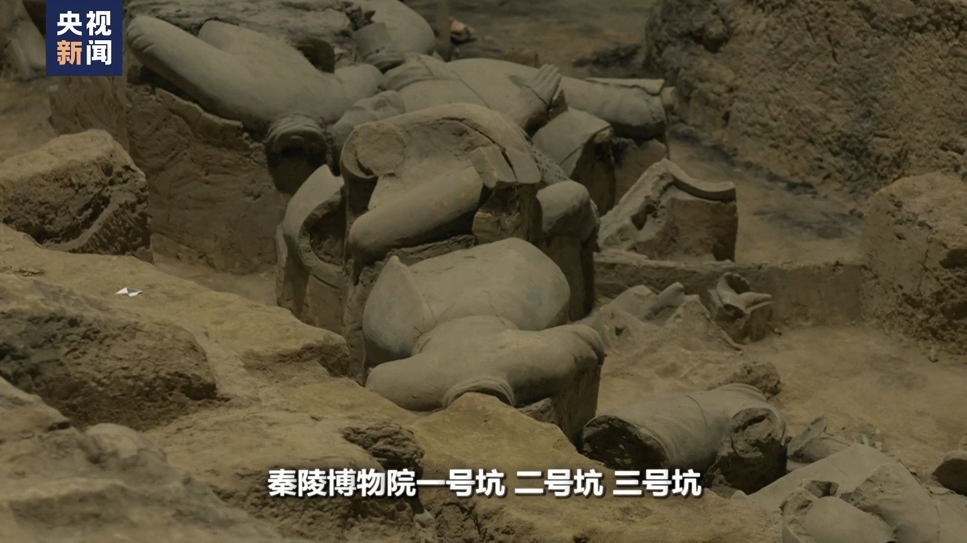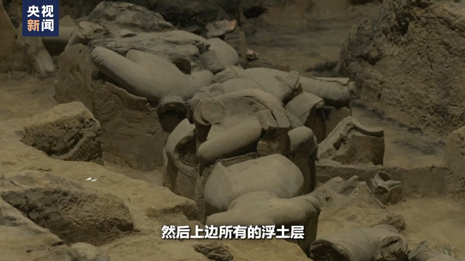 秦始皇帝陵博物院副院長 周萍:其實(shí)秦始皇帝陵博物院出土,不僅僅只有彩繪陶俑?,F(xiàn)在觀眾去現(xiàn)場去看的時候,最??吹降木褪菐追N材質(zhì),一種就是我們的彩繪陶俑,一種是坑內(nèi)的土遺址,一種我們銅車馬是金屬文物;其實(shí)在土遺址里面,有很多很多這種木質(zhì)的遺存。它這個就是我們這個隔梁在建的時候,實(shí)際上就相當(dāng)于用木頭去搭了一個相當(dāng)于小房子,把這些彩繪俑保存在里面。