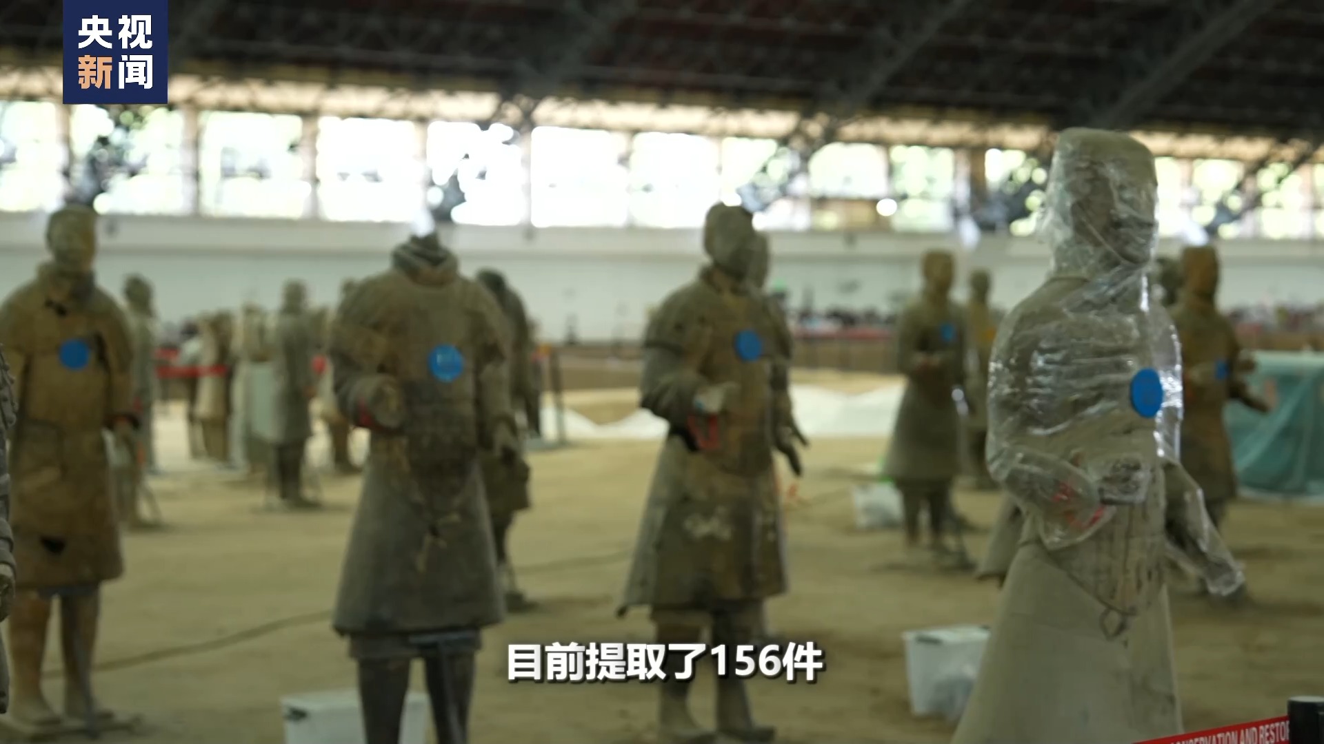 秦始皇帝陵博物院文物保護(hù)修復(fù)專家 蘭德?。?/strong>第三次考古發(fā)掘,主要在秦俑一號坑T23號探方。在這個方位共挖掘了256件兵馬俑,我們剛才已經(jīng)看到目前提取了156件。其中我們修復(fù)了140多件,還有一些我們正在修復(fù)。